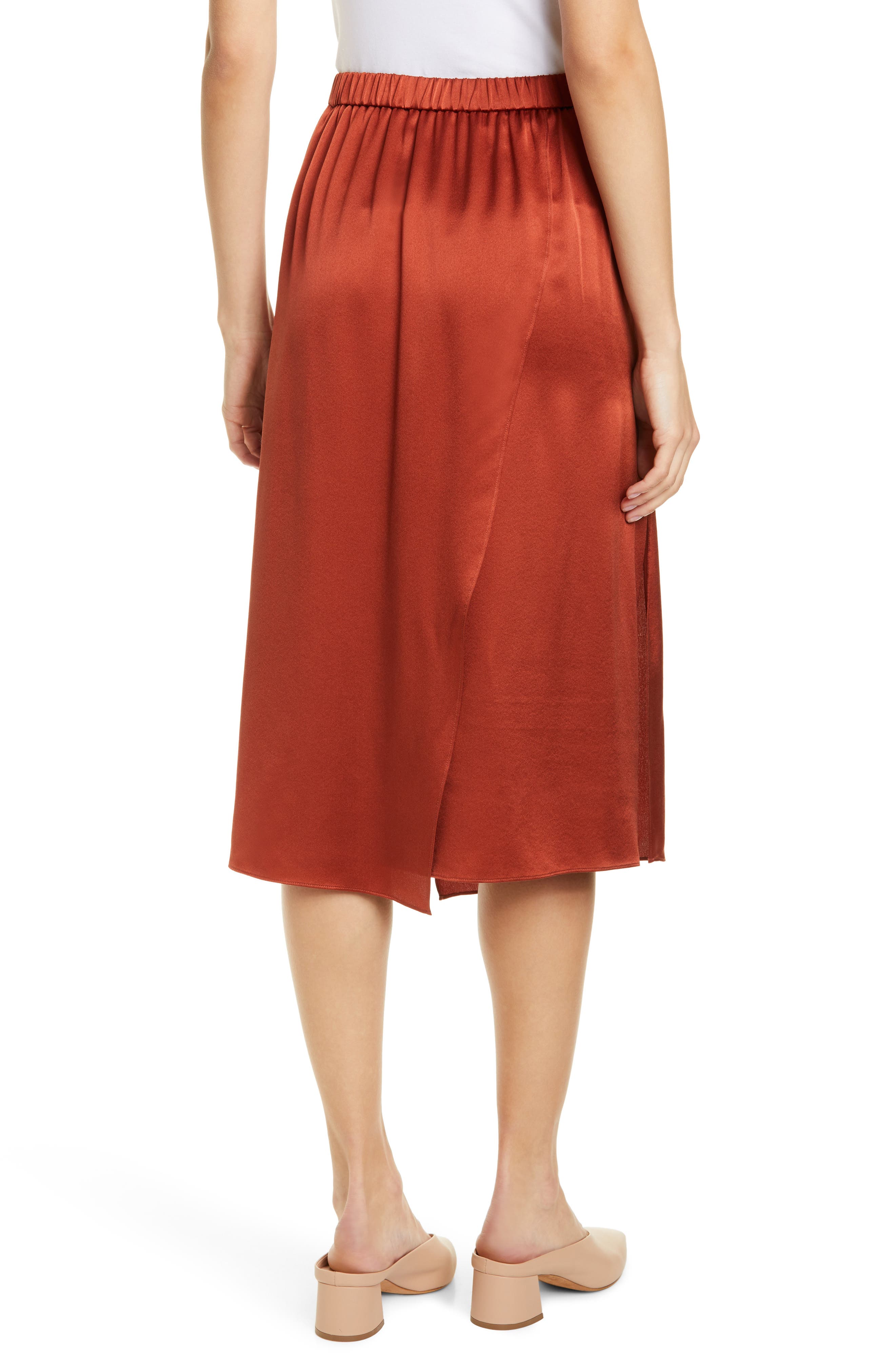 Sorry, the email address entered isn't valid. Something went wrong. satin vince sz flare elastic waist satin skirt navy