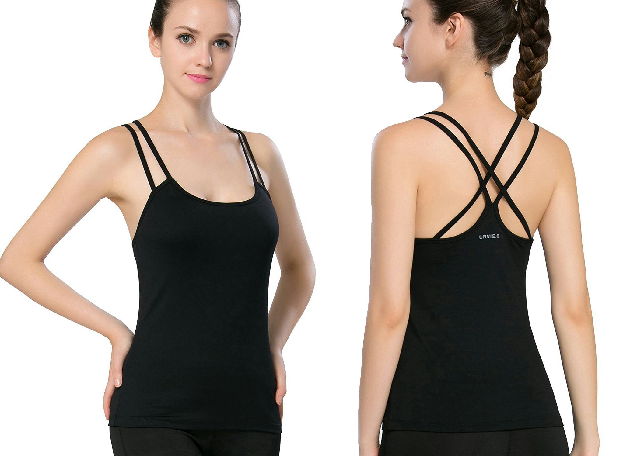 Skinny camisole straps adjust discreetly in back, Camisole with built in shelf bra and inserted elastic band provide light support and coverage, Conveniently adjustable spaghetti shoulder straps for a customized fit, Great sewing craft offers no irritation; flatlock stitching offers chafe-free comfort, Soft, stretchy and comfortable fabric light weight but durable, promises mobility for full range of motion, Plain basic tank tops could be worn as homewear or active wear, also could be worn as layering undershirt, FEATURES -- Built-In Bra (Shelf Bra w/Sewn-In Molded Cups), Adjustable Straps, Quick Dry, Anti-Odor, Ultra-Soft, Lightweight, Breathable, Tag-Free. They provide medium control of the bust, size, and abdomen. please check the size chart before ordering. Helpful review: Large chested girls, this actually works!