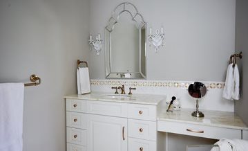 We all know the benefits of decorating with mirrors and what they can bring to smaller spaces. Your Shopping list is loading, this shouldn't take long. Create an elevated platform to draw the eye, giving it a glamorous touch with a marble-effect surface. If you love period dramas set in the early part of the 20th century, this beautiful space should provide you with plenty of Edwardian bathroom ideas. bathroom traditional modern kid custommade A traditional style bathroom is designed in a way that takes in classic sty With period dramas such as Downtown Abbey taking over our TV screens in rec Art Deco is a timeless style we keep coming back to again and again. bathroom designs traditional transitional Photography by Northlight Photography. Eco-friendly, water-saving bathroom range. Mixing modern lines with classic style, this home boasts timeless elegance. The vanity area shown in this photo has plenty of storage within the mirrored wall cabinets and the large drawers below. Both you and your clients will benefit when you refer them to renovate with Sweeten.