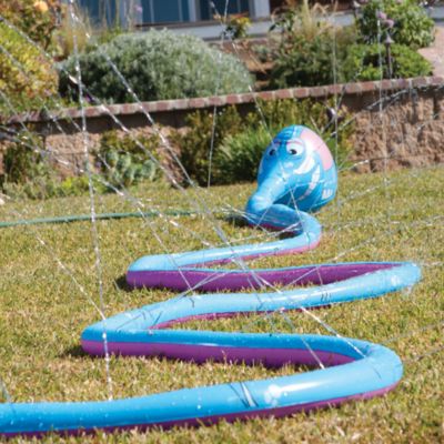 To play, players have to balance the cup on their head for one minute or the longest possible. This slide measures 18 feet long, and features built-in sprinklers. Give the first player an empty cup. To use it, simply dunk the toy in water like a sponge. Keep the prizes simple and make sure that everyone gets something whether it be a prize or a snow cone. trampoline sprinkler sprinklers tram Find out more about the Lil Snake Inflatable Yard Sprinkler here. Once theyve chosen the cup, they have to dump it on their head.