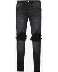 Black Wash Blowout skinny stretch-denim jeans, Ripped slim-fit skinny stretch-denim jeans, Ripped-knee regular-fit stretch-denim jeans, Patch-detail slim-leg stretch-cotton jeans, Hard Wax mid-rise slim-fit stretch-denim jeans, Registered office: 400 Oxford Street W1A 1AB, Appointment & Events Bookings Terms & Conditions, Slim fit, low rise, slim leg, belt loops, five pockets, rips at knees, branded copper-toned hardware, all-over plaint splatters, embroidered leather patch at back, v-shaped yoke, Size 30: rise 10in / 25.5cm, inside leg 31in / 79cm, leg opening 12in / 30cm, Model is 6ft 2in/1.88m and wears a size UK 30, Unlimited UK timed, nominated and standard delivery, Next day UK delivery (if ordered by 6pm UK time), Unlimited UK timed, nominated day and standard delivery on orders over $55.00, Unlimited worldwide deliveries on orders over $55.00.